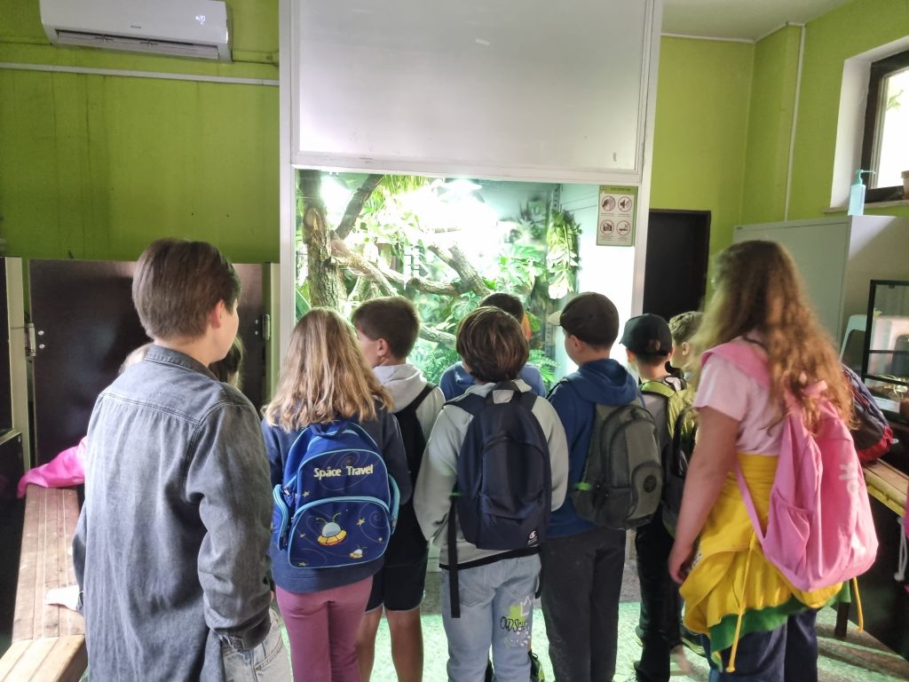Najprej smo pomalicali, nato pa preizkusili še tamkajšnja igrala. Siti in razigrani smo se nato v učilnici – ja, tudi v živalskem vrtu jo imajo – naučili nekaj več o žuželkah. Rokovali smo z avstralskim paličnjakom in afriškim hroščem. Sledilo je vodenje po živalskem vrtu. Čisto od blizu sta nas pozdravila azijska leva Raman in Živana, med malico smo zmotili žirafjega samca Rastka, v vivariju opazovali kače, kuščarje in dvoživke, seveda pa smo obiskali tudi abrahamko Gango.