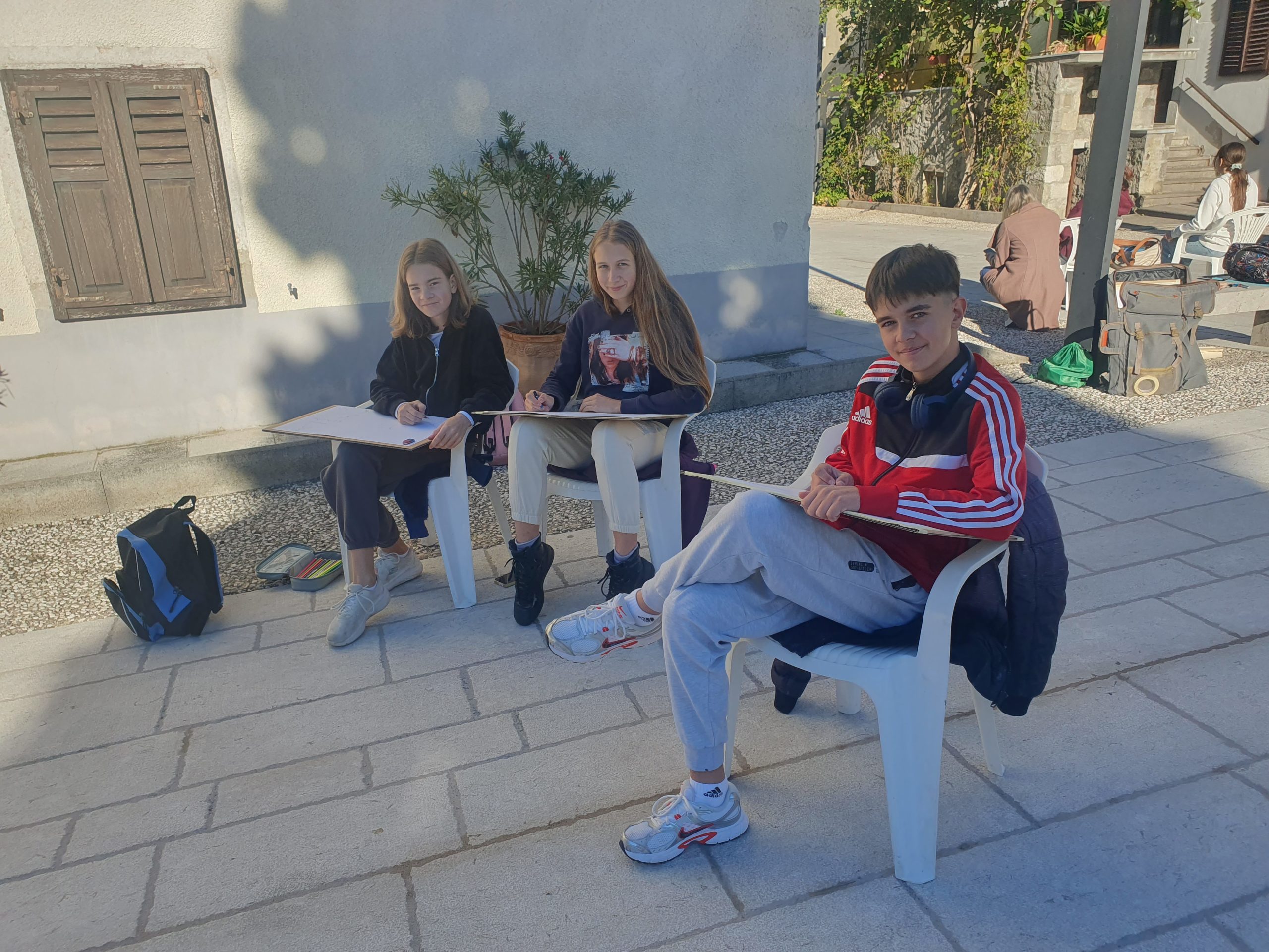 Trije učenci naše šole – nadarjeni likovniki – so se v torek, 7. 10. 2025, udeležili Likovnega extempora v Vipavskem Križu, ki ga je organiziralo MDPM Ajdovščina. Ena od učenk, Maja Rosa iz 8. razreda, je povedala: »Ful mi je bilo všeč. Sami smo si lahko izbrali motiv in likovno tehniko. Svojo pozornost sem namenila samostanu, ki sem ga s svinčnikom in vodenimi barvicami skušala karseda realistično ujeti na papir. Ob koncu smo imeli še voden ogled po tej »vasici«, ogledali smo si tudi galerijo, v kateri so bili razstavljeni prelepi akvareli.«