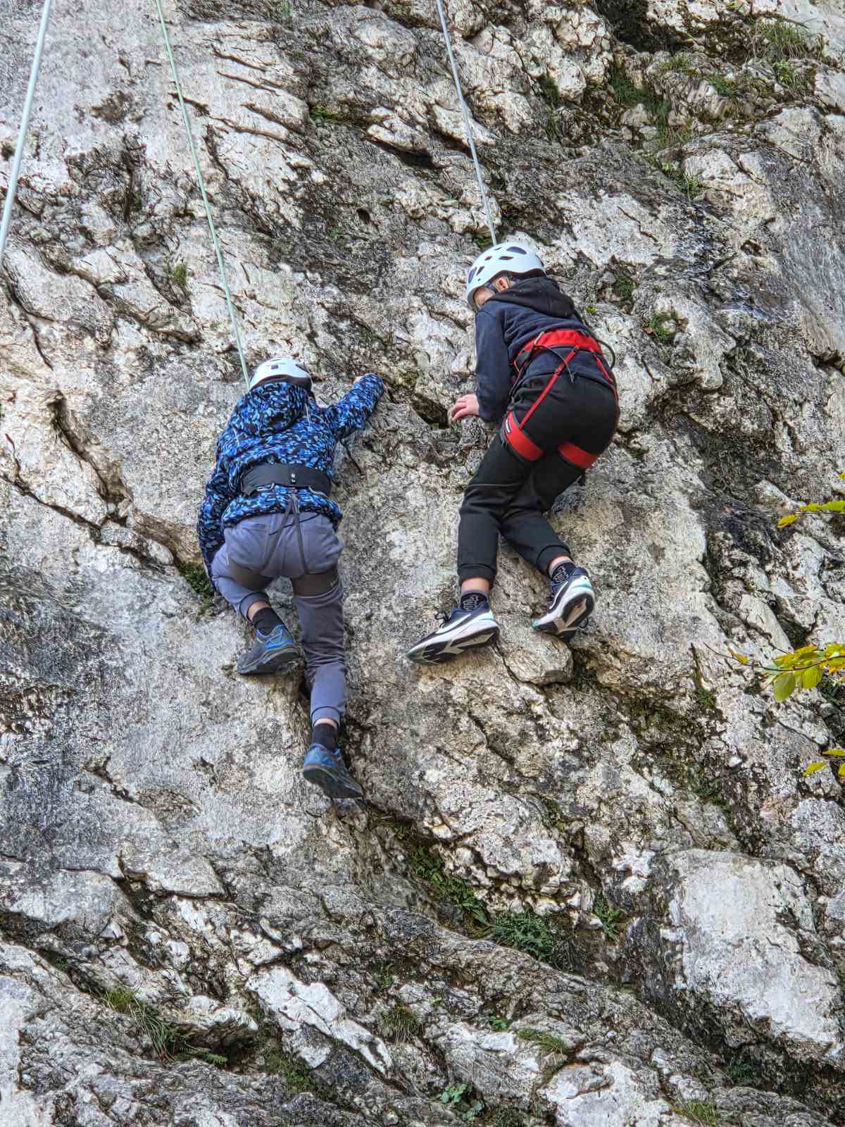 Ufff, danes je bil zelo pester dan. Poln novih doživetij in dosežkov. Po zajtrku smo se odpravili do plezalne stene, kjer smo se prav vsi do zadnjega preizkusili v plezanju. Kar štirje smo priplezali do vrha, nekateri tudi večkrat. Ker nas je že pošteno zeblo v prste, smo se odpravili na kosilo. Popoldan smo se naučili nordijske hoje, se podali na pohod in na koncu še tekmovali v teku s palicami. Vse se da! Po večerji smo se zabavali v raznih družabnih igrah kot so Kočija, Ali imaš rad svojega soseda, in podobno. Pa še veliko novih prijateljev smo spoznali v tem tednu.