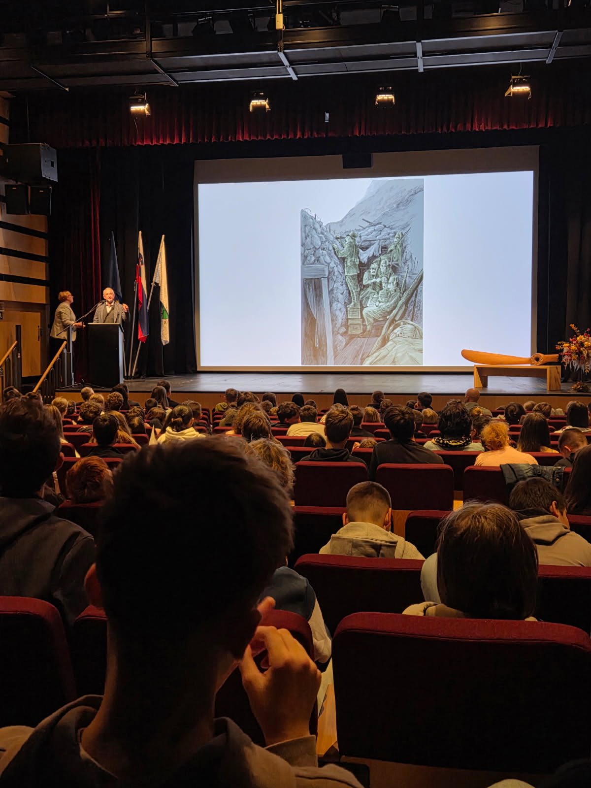 V sredo, 15. oktobra, smo se učenci 9. razreda udeležili “ZGODO DNEVA” v Ajdovščini. Prisluhnili smo predavanjem različnih strokovnjakov s področja 1. svetovne vojne in vojnega letalstva. Na koncu sta nam avtorja knjige Ajdovski letalec nad soško fronto predstavila zgodbo o Venčeslavu Vrtovcu iz naših krajev. Izvedeli smo veliko novega in dobili v dar tudi knjigo.