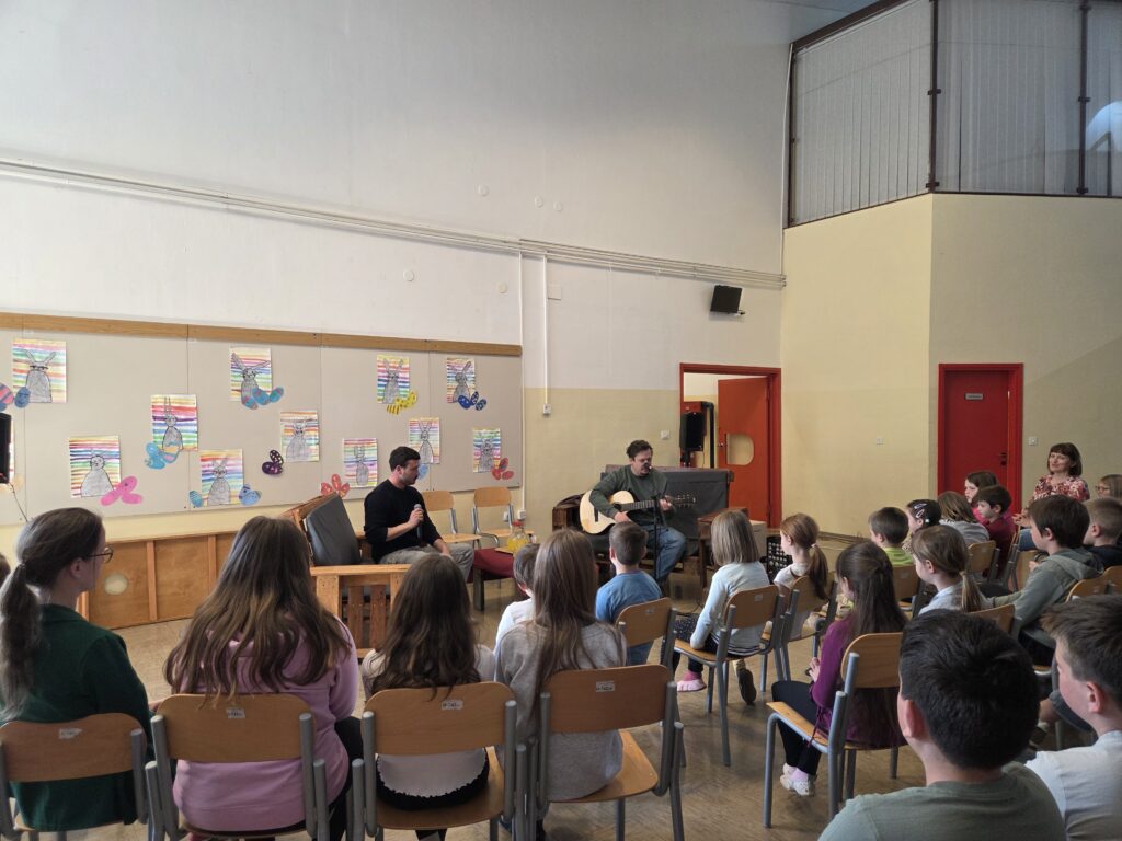 V sredo, 8. aprila, smo imeli učenci predmetne stopnje kulturni dan. Najprej smo se preizkusili v štirih delavnicah: igranju spremljave na različne instrumente, petju, pripravi intervjuja in izdelavi skladbe s pomočjo aplikacije Garage Band. Po malici pa sta k nam na obisk prišla Matija in Urban iz skupine Batista Cadillac, ki sta nam zaigrala nekaj pesmi in nam preko intervjuja predstavila svoje delo. Najbolj čaroben trenutek pa je bil, ko smo vsi skupaj zaigrali in zapeli pesem Ne manjka sanj. Upamo, da nas kmalu obišče še kakšen znan glasbenik in bomo spet lahko muzicirali skupaj.